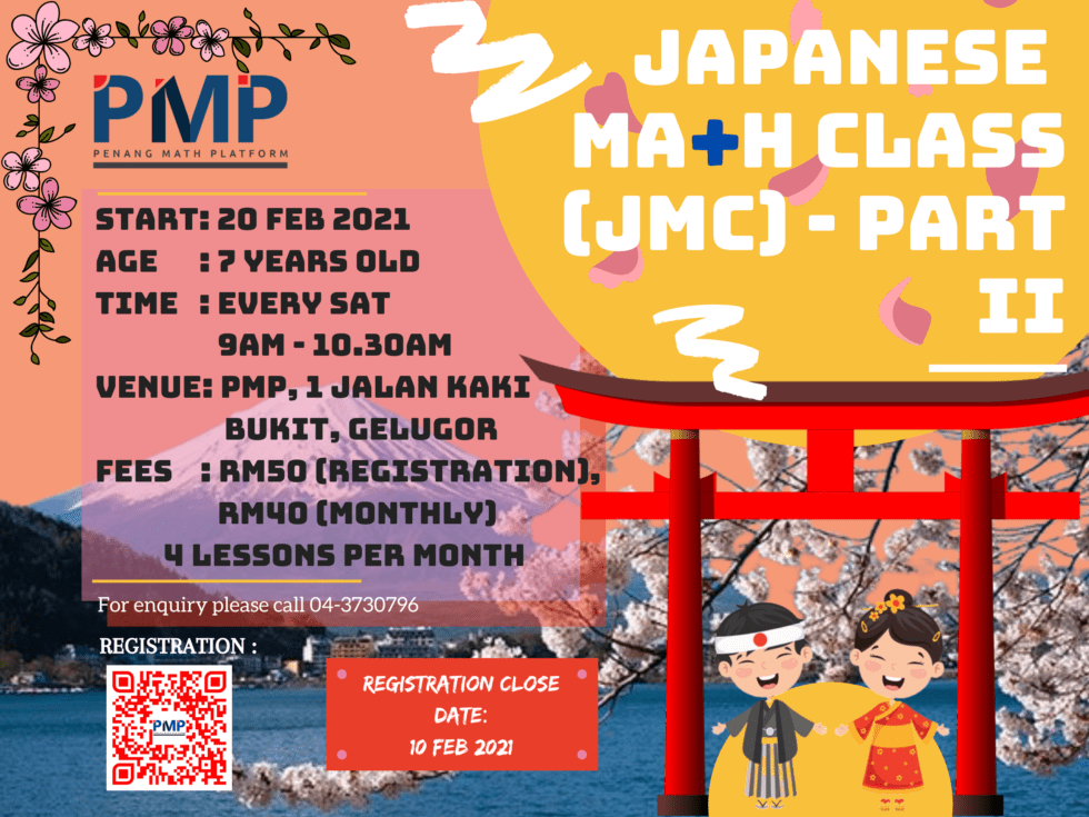 (Basic to advance Math tutorial for national syllabus, Singapore Math, Mental Arithmetric, and others). Flagship Japanese Math Class for pre-schoolers (6 years) to build entry level foundation for math appreciation and inter-personal communication.